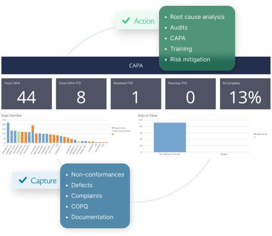 Corrective Actions software can provide much-needed visibility into Non-conformance and CAPA processes, providing insight that can help organisations find potential problems before they become major issues. It also provides a better understanding of why Non-conformances occur in the first place, resulting in more informed corrective and preventive action plans that can improve organisational efficiency.