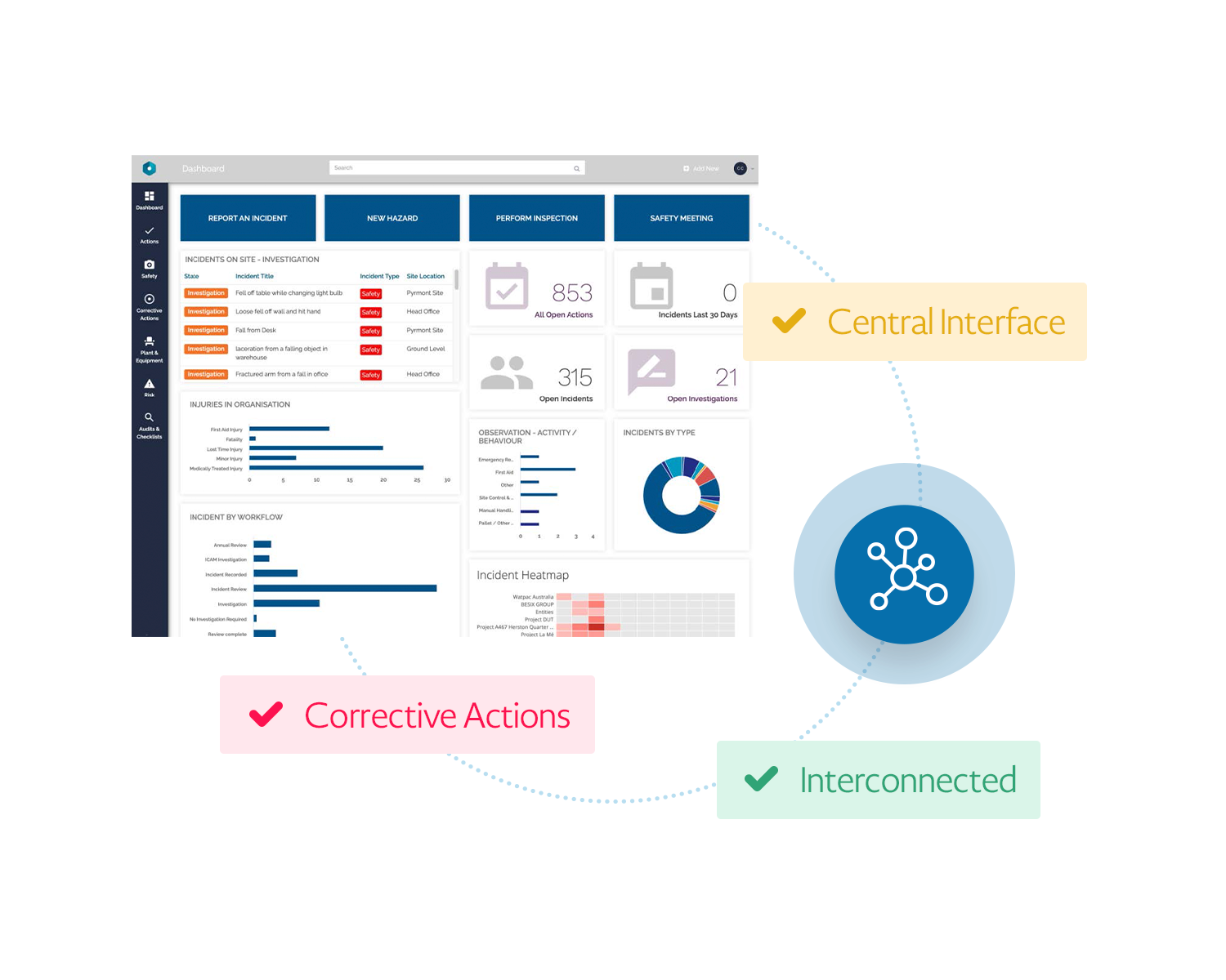 Harness global visibility and control all in one place with configurable reports & widgets. Role-specific views let every department focus on the metrics, actions, and tasks that matter most. Track corrective actions from creation to closure, and identify non-conformances while having complete oversight of hazard hotspots within your entire organization. Rapidly surface completed checklists and inspections, workflow status, missed inspections, overdue actions, top hazards, risk scores, inspection findings, and risk heat maps visually to help drive actionable decisions faster.