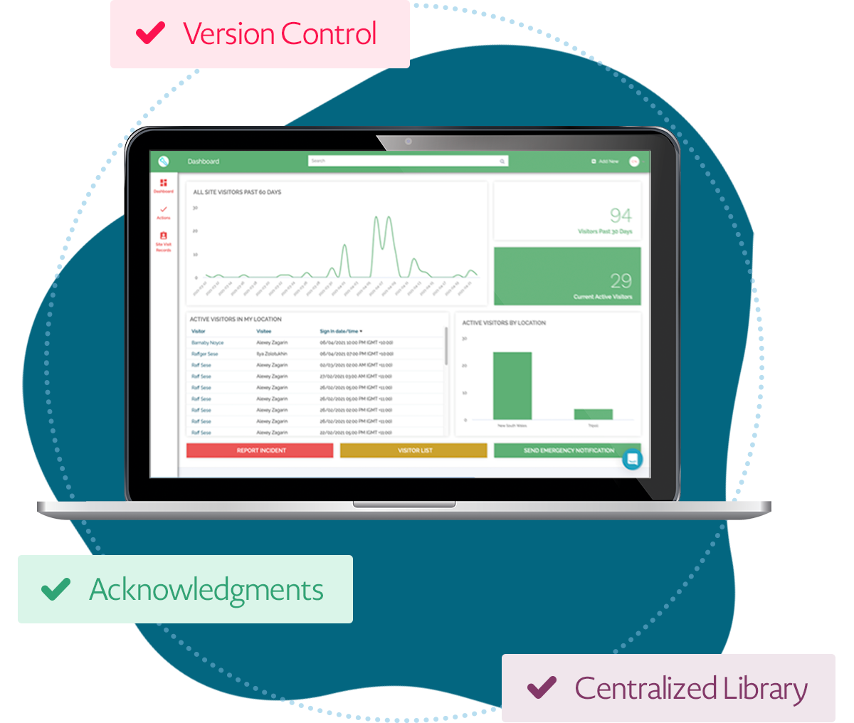 Export all reports and compliance data with a click of the button. Perfect for presentations or reporting legislative requirements, such as OHSA 300 (USA).