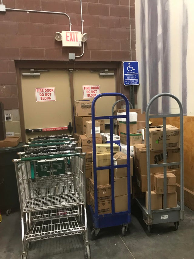 It’s good to be an optimist. A positive attitude goes a long way and we’d all like to think that the worst is never going to happen. So why is that perfectly good floor space is reserved for an emergency exit? And where will all this extra stock go? Hey, at least everything is on wheels, right? It will be so quick and easy to move.