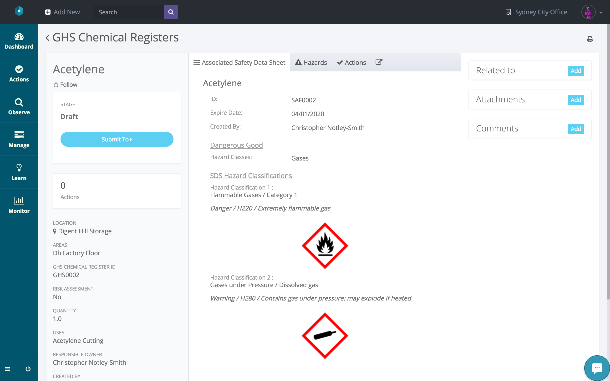 From here you’ll find yourself on the record screen. Simply Attach the appropriate SDS and supply any details using the on-screen prompts, and you’re done!