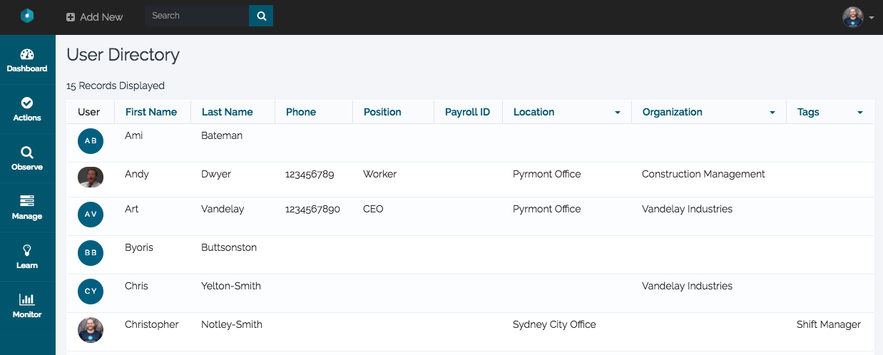also displays Tags, which means you can quickly see who the Fire Wardens are in your location or