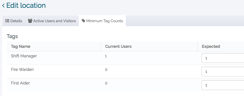 of these Tags in each location by going to Settings > Locations and clicking the Minimum Tag Count