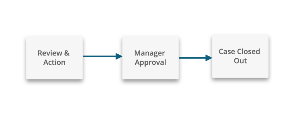 1. Incident Logged > Manager Review > Investigation > Case Closed Out:
