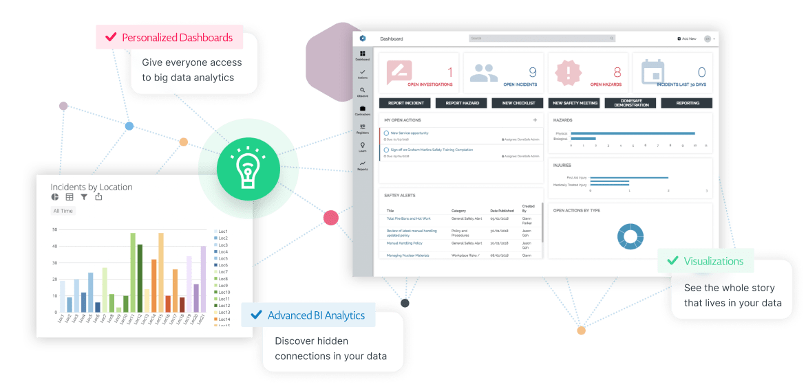 Use dashboards, reports, and real-time observations to pinpoint risks, gaps, or improvement opportunities. Then choose the modules you need (or build-your-own) to address them.