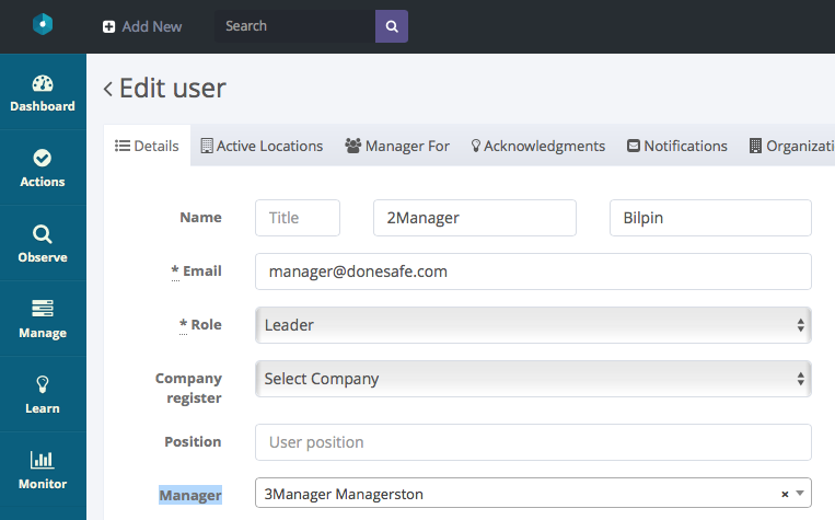 For clarity, leaders are set at a per user level on their user profile as shown below.