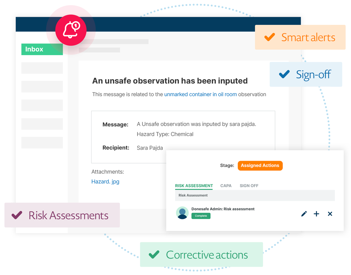 Actions can be automatically created and sent to workers based on specific conditions. Donesafe will even follow up on actions if they are not marked as complete. Includes preventative actions and corrective actions (CAPA).