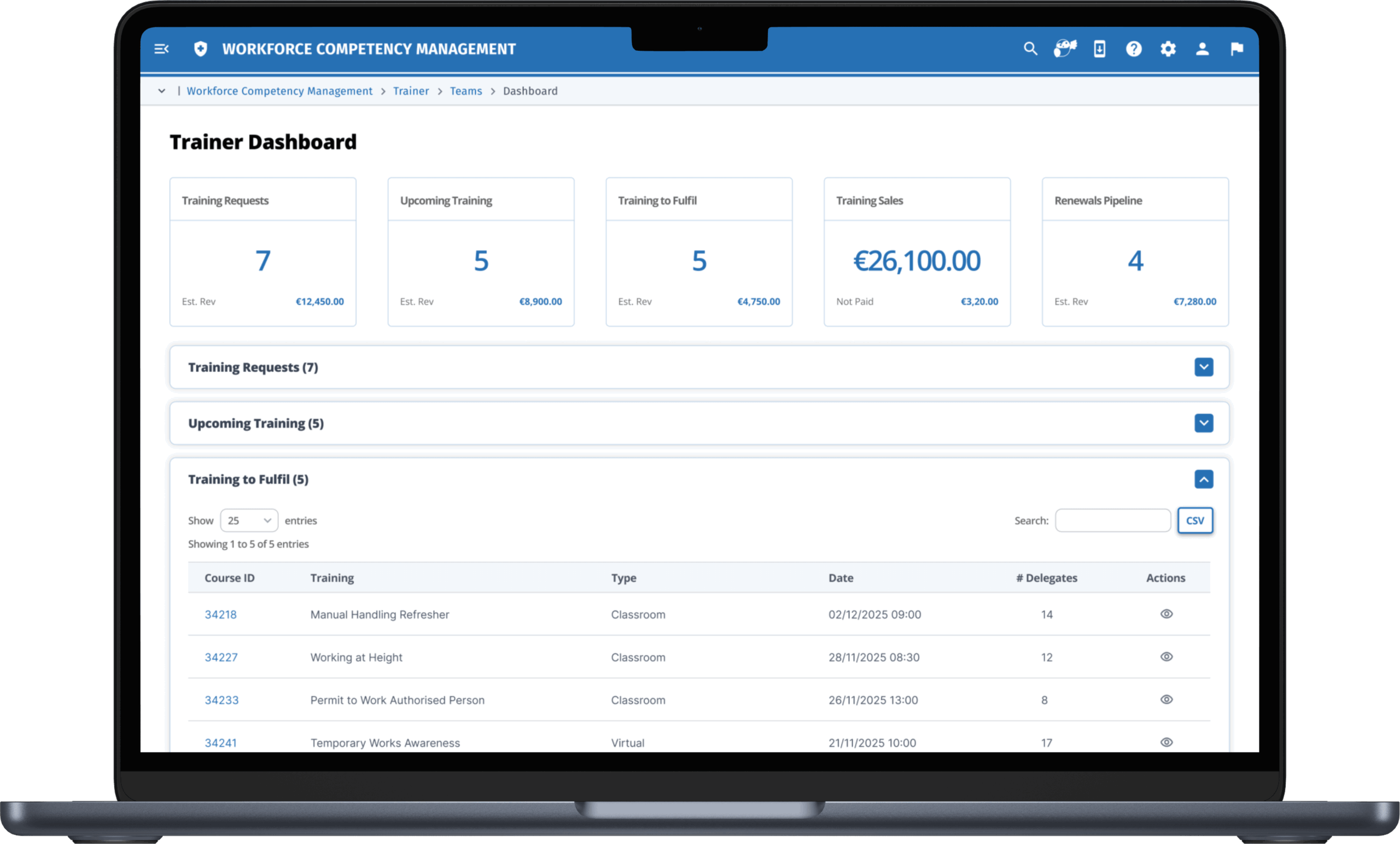 Automated alerts, certificate generation, and expiry notifications keep training current and audit-ready without manual chasing or spreadsheet management. - Real-time visibility into workforce capability