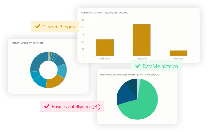 Create, customise, and schedule advanced reports easily with the attributes and visualisations of your choosing. Leverage the data that’s important to you and generate reports such as overall vendor performance against pre-determined KPIs, complaints and non-conformance register, good and services supplied or outstanding, and even supplier ESG performance (if the Environmental module is enabled).